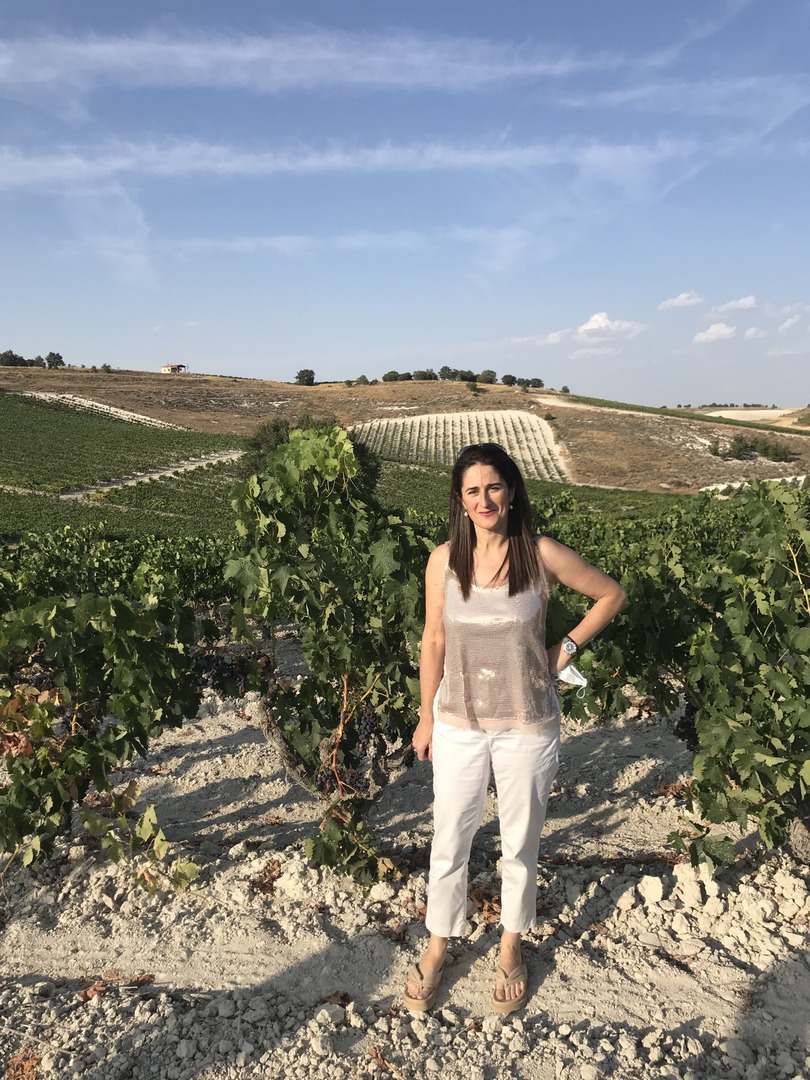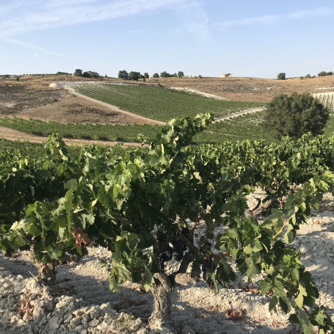 Sus viñas están plantadas mayoritariamente en espaldera y tienen más de 20 años de edad, salvo dos parcelas en vaso con medio siglo a sus espaldas.Y esta es la materia prima con la que la enóloga, natural de Traspinedo, elabora sus Ribera de Duero, unos vinos que destilan esencia de Pesquera por los cuatro costados. Y es que pseando por sus viñas una no puede dejar de asombrase con este espacio natural de una riqueza asombrosa. Las perdices campan a sus anchas, las águilas sobrevuelan ese cielo castellano único y las viñas crecen "tan a gusto" en ese suelo calizo tan característicos (esos "caminos blancos"), que como bien dice Mónica,da vinos con un carácter único, muy marcado y especial.
